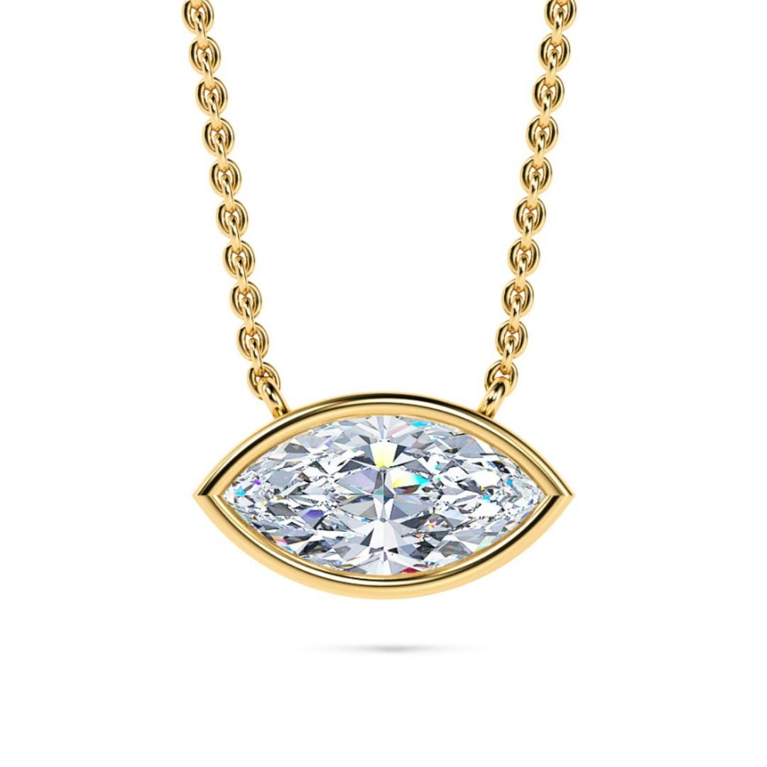 Sleek and dramatic, the Marquise Bezel Solitaire Diamond Necklace pairs a slender silhouette with a smooth bezel frame for modern elegance.