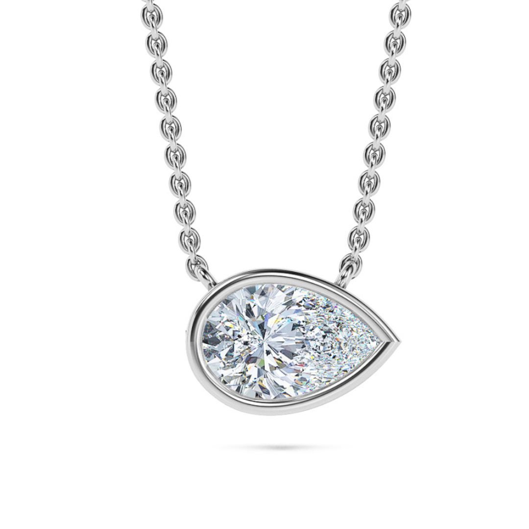 Graceful and luminous, the Pear Bezel Solitaire Diamond Necklace highlights natural movement with a smooth bezel edge ? refined brilliance for every occasion.